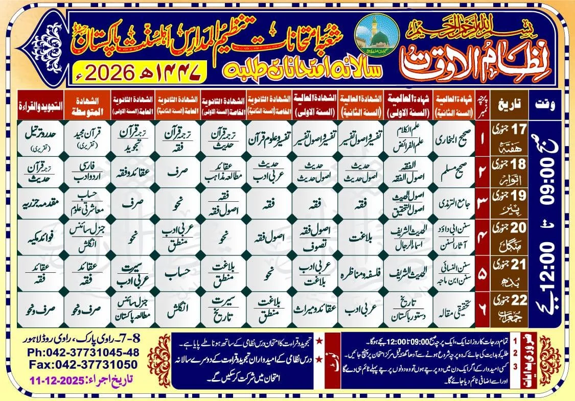 نتائج امتحانات 2026 تنظیم المدارس اہلسنت پاکستان | |