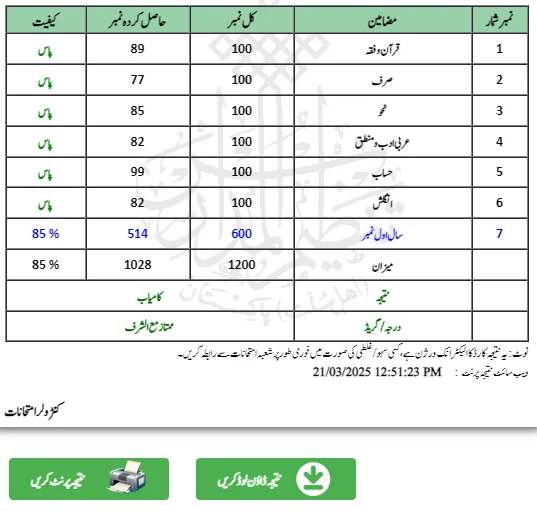 Tanzeem ul Madaris Result 2026 is announced on 13th of March 2026.You can check result by roll number and name